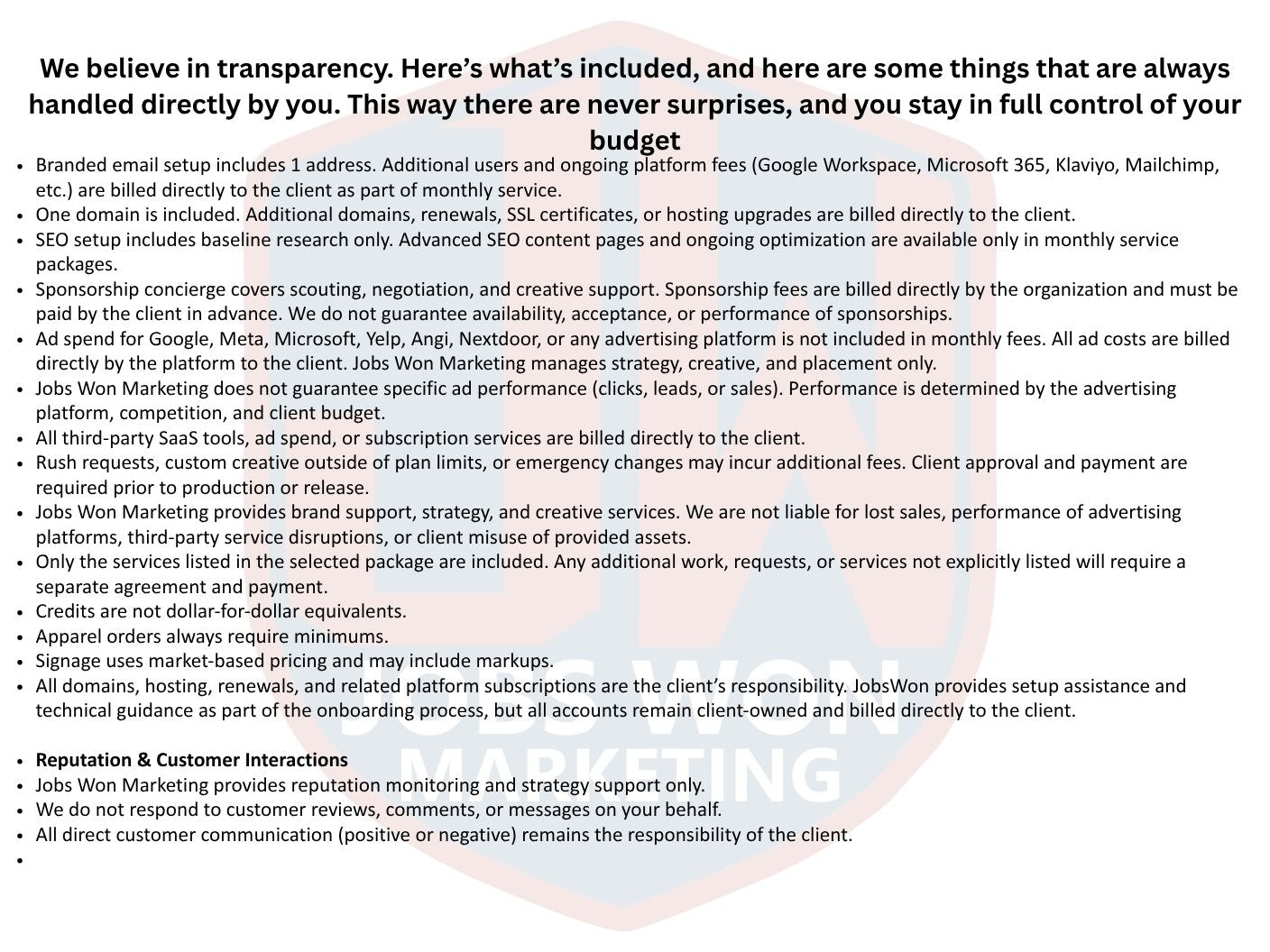 Note: Ad spend for Google, Meta, Microsoft, Yelp, or other platforms is billed directly to the client.